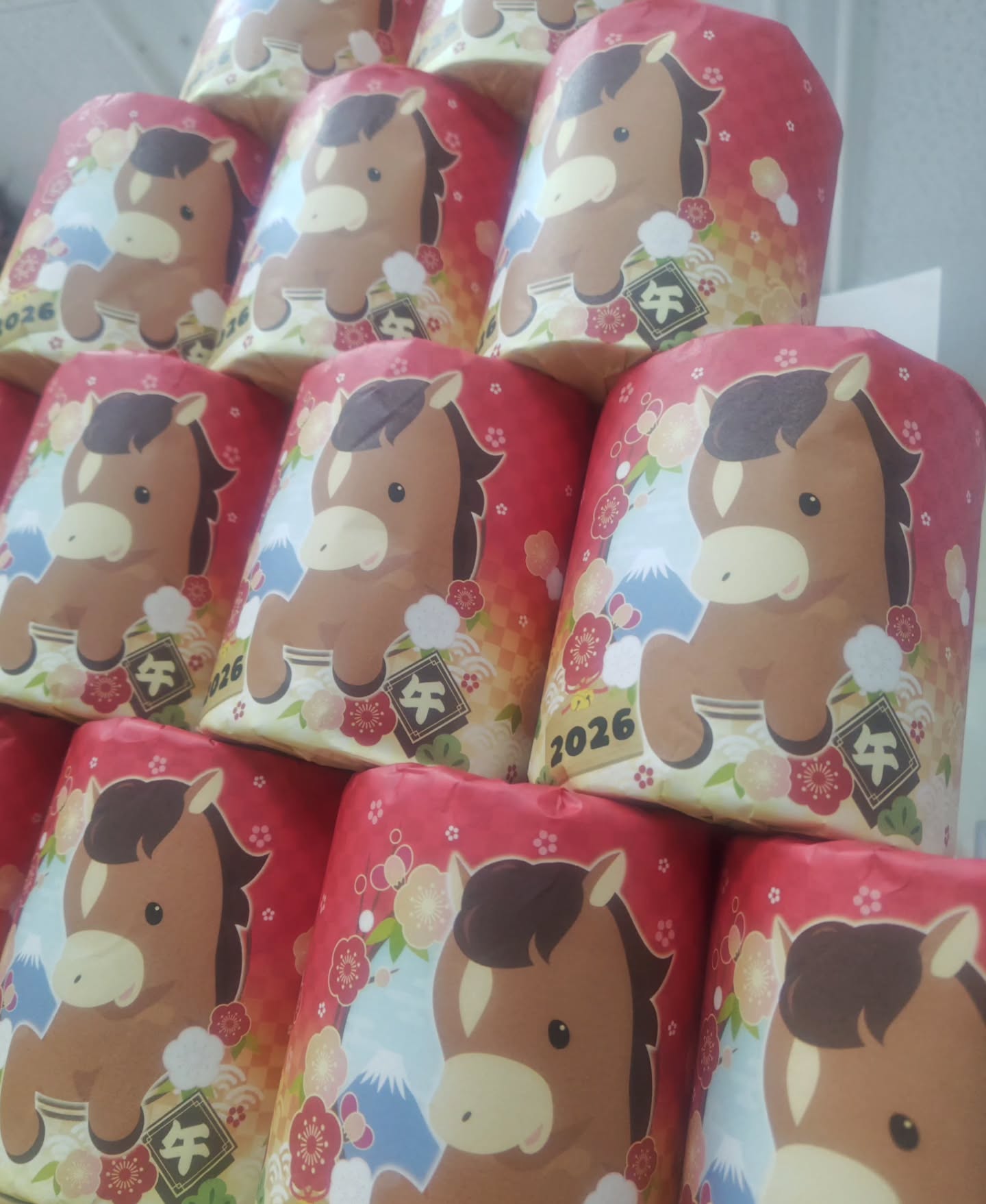 トイレットペーパー100個山分け企画、毎年恒例干支ロールをお届けしています🐴